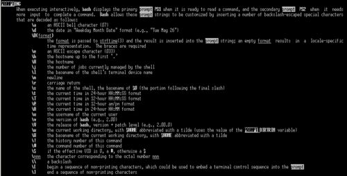 プロンプトの表示を変更できる環境変数PS1ですが、いろいろと変更できるようなので、一通り打って表示してみました。 まずは、最後にもとに戻せるように今の値を控えておきました。 [root@host1 ~]# echo $PS1[\u@\h \W]\$[root@host1 ~]# \u :ログインユー…